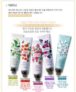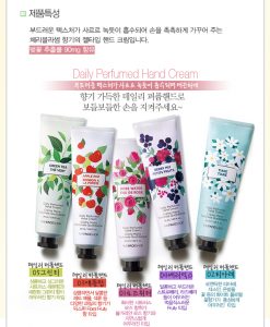 Kem dưỡng da tay hương nước hoa ( Daily Perfumed Hand Cream The Face Shop ) hương nước hoa từ các thành phần tự nhiên cực kỳ dịu nhẹ tạo cảm giác dễ chịu đồng thời giúp da tay mịn màng và dưỡng ẩm chống hiện tượng bong tróc hoặc nhăn da hiệu quả dạng kem mịn dễ tản rộng và thẩm thấu vào da, phục hồi sức sống làm căng đầy những nếp nhăn trên da.