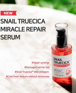 Serum ốc sên Some by Mi snail true cica miracle repair serum 50ml nổi lên là sản phẩm dưỡng da chiết xuất từ dịch ốc sên được nhiều người tin dùng. Sản phẩm chứa rất nhiều protein, vitamin và canxi có tác dụng làm trắng da, giảm vết thâm, sạm, nhăn hiệu quả.